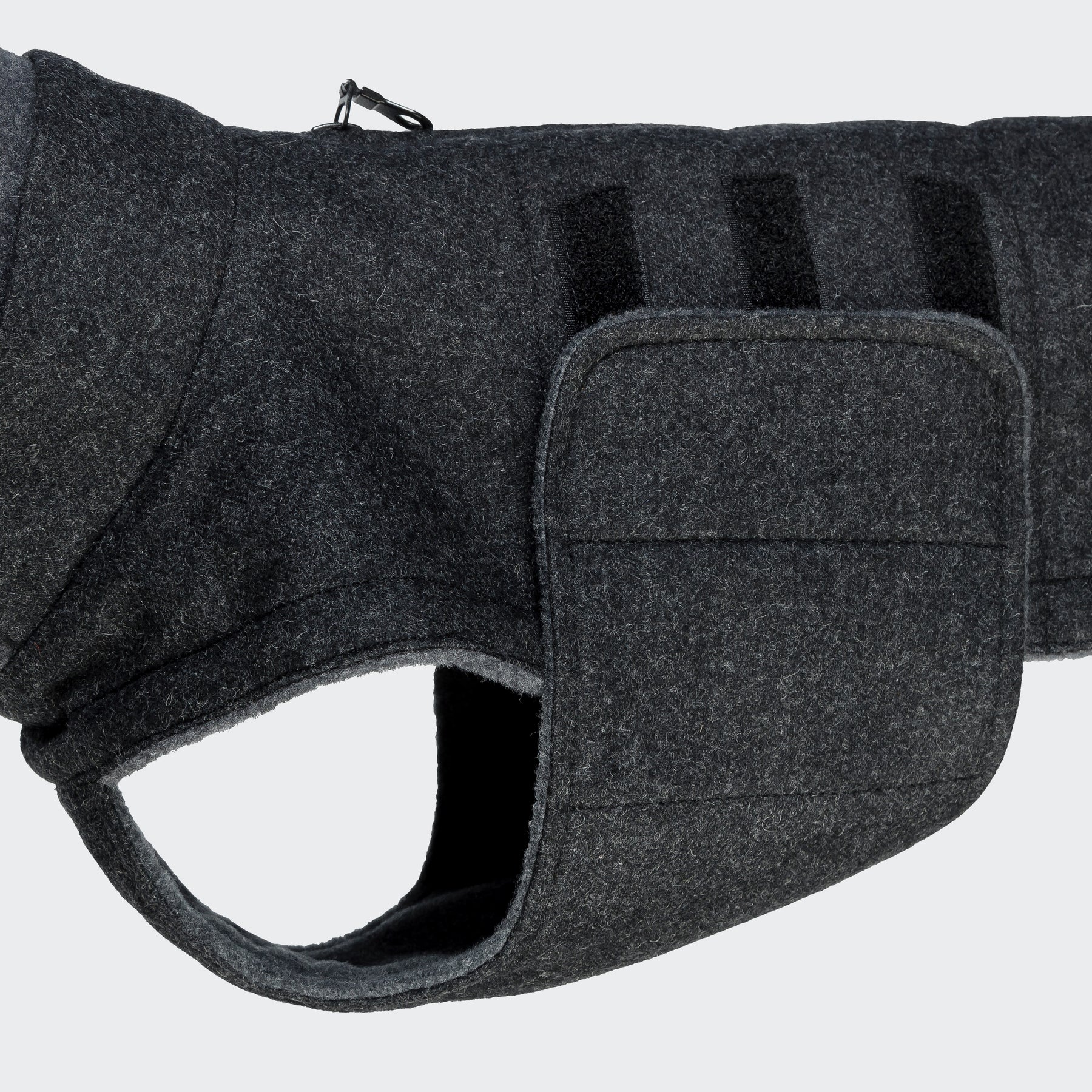 From Cloud 7 Berlin. A dog coat tailored to fit Dachshunds. Complete with a comfortable fit, warm Fleece lining and extremely water-repellant wool mix fabric along with elegant design.